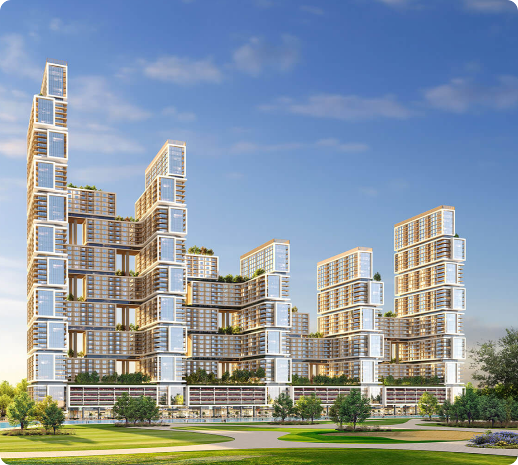 Масштабный по площади и необычный по своему внешнему облику Sobha One – проект из 5 сообщающихся башен в престижном сообществе Sobha Hartland.